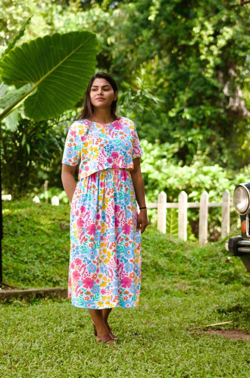 Mixed Floral Pattern Zipless Feeding Frock