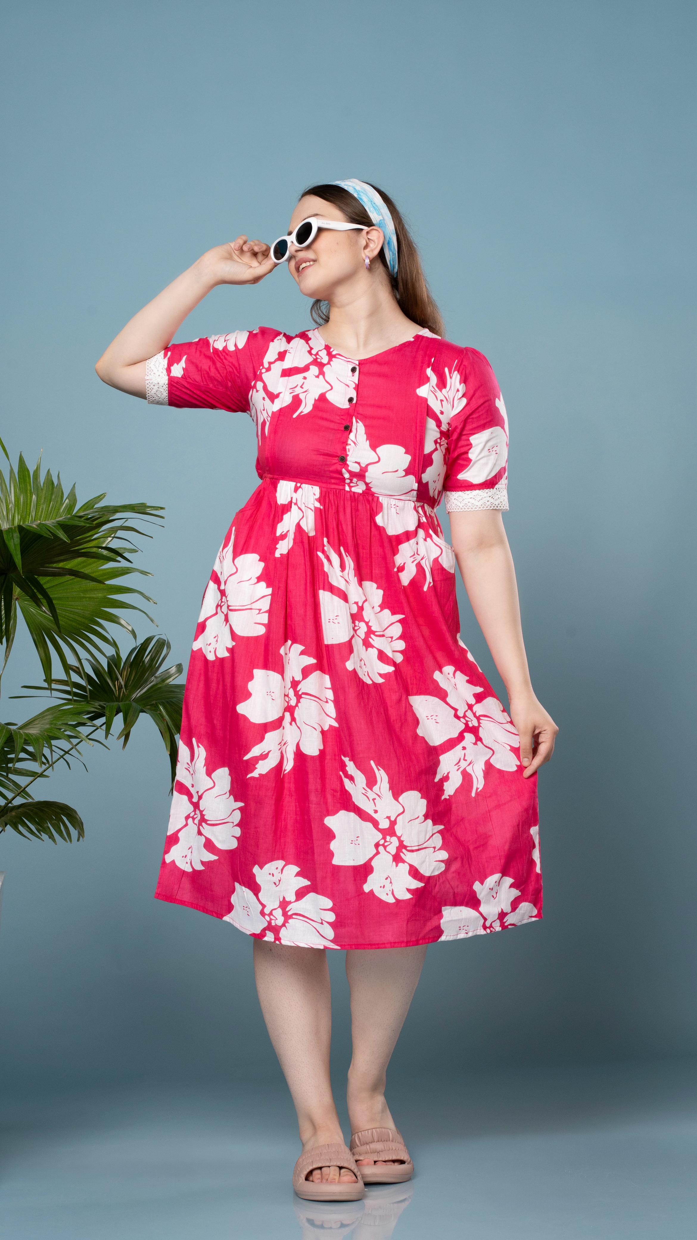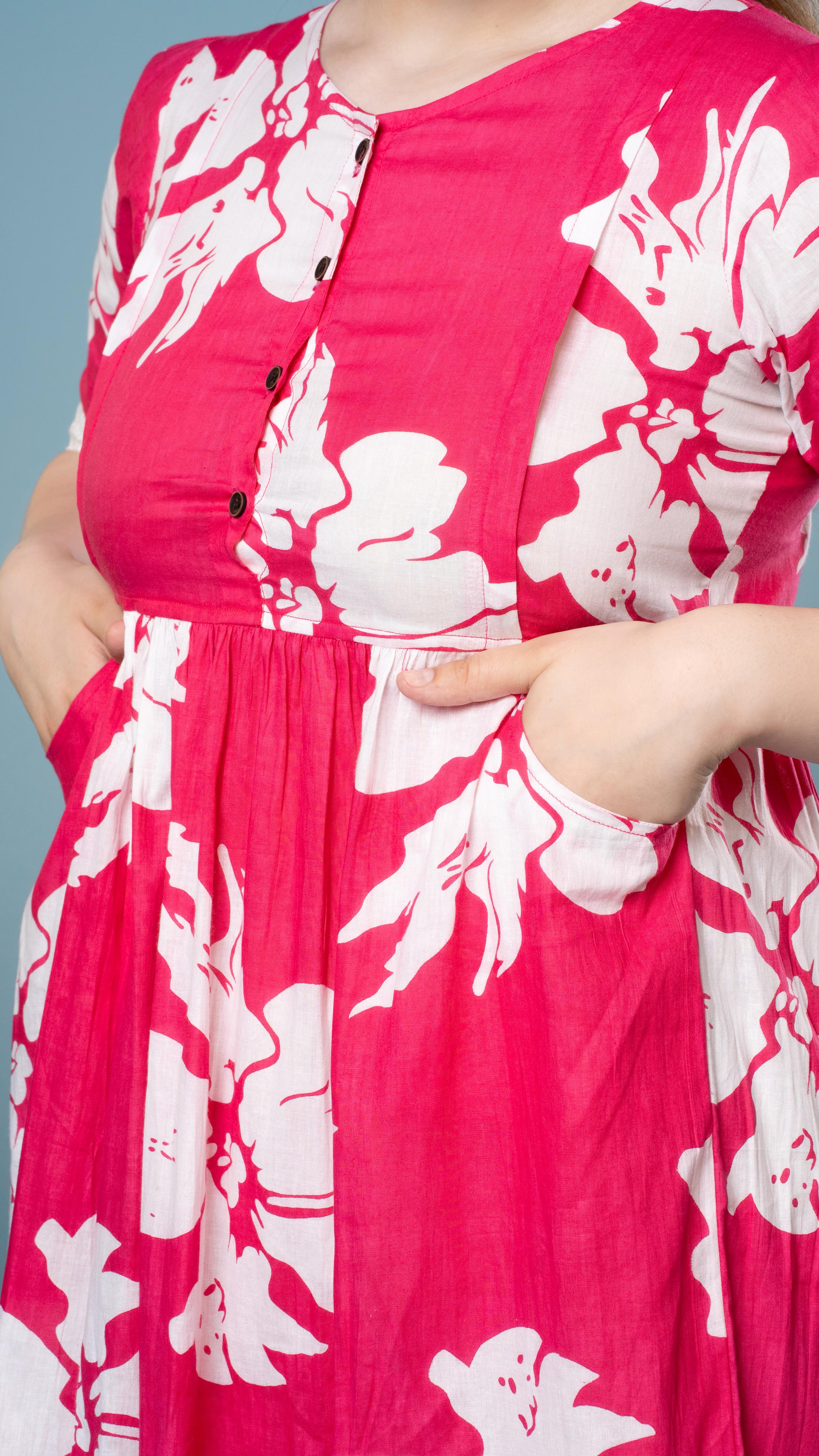 Vibrant pink floral feeding top