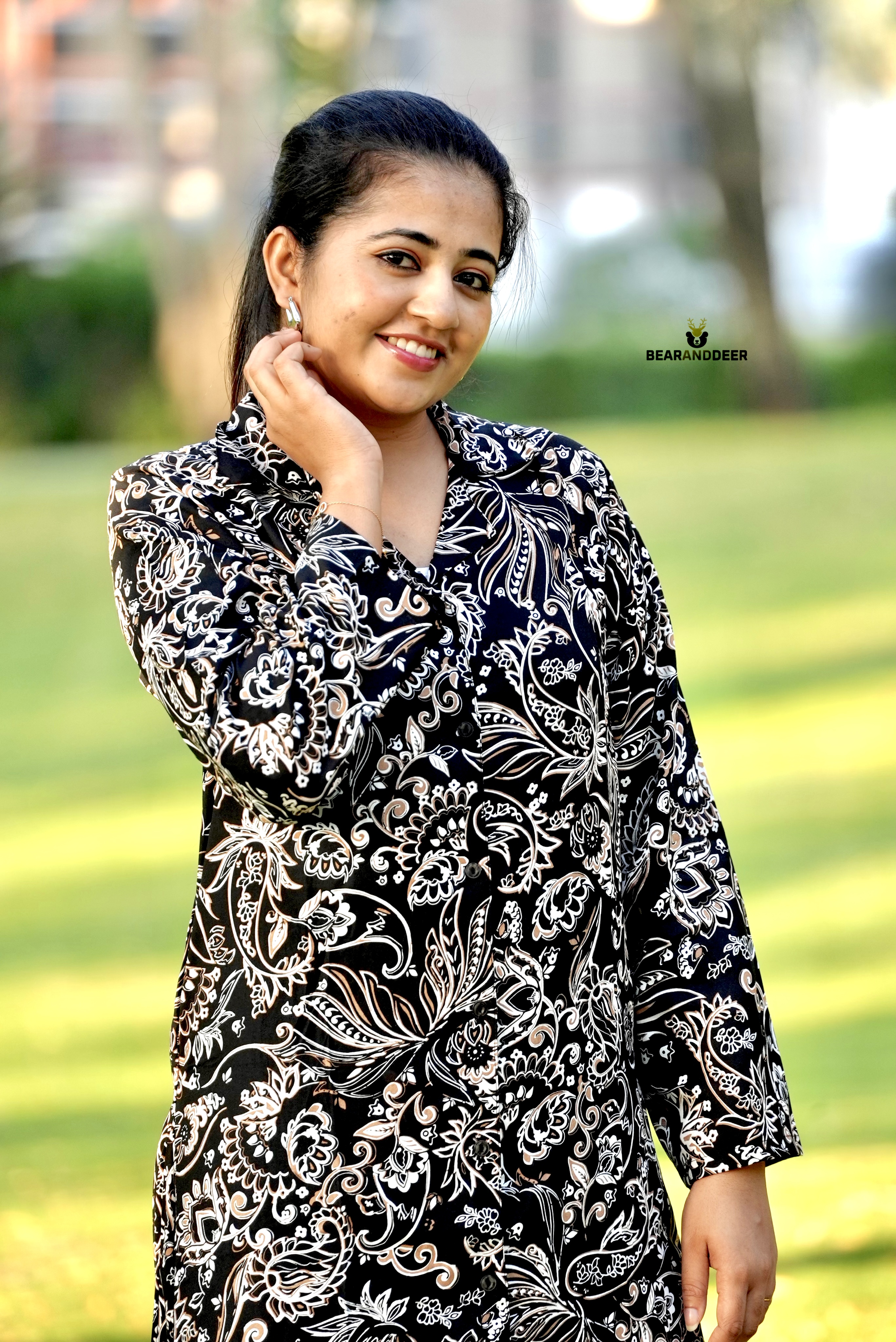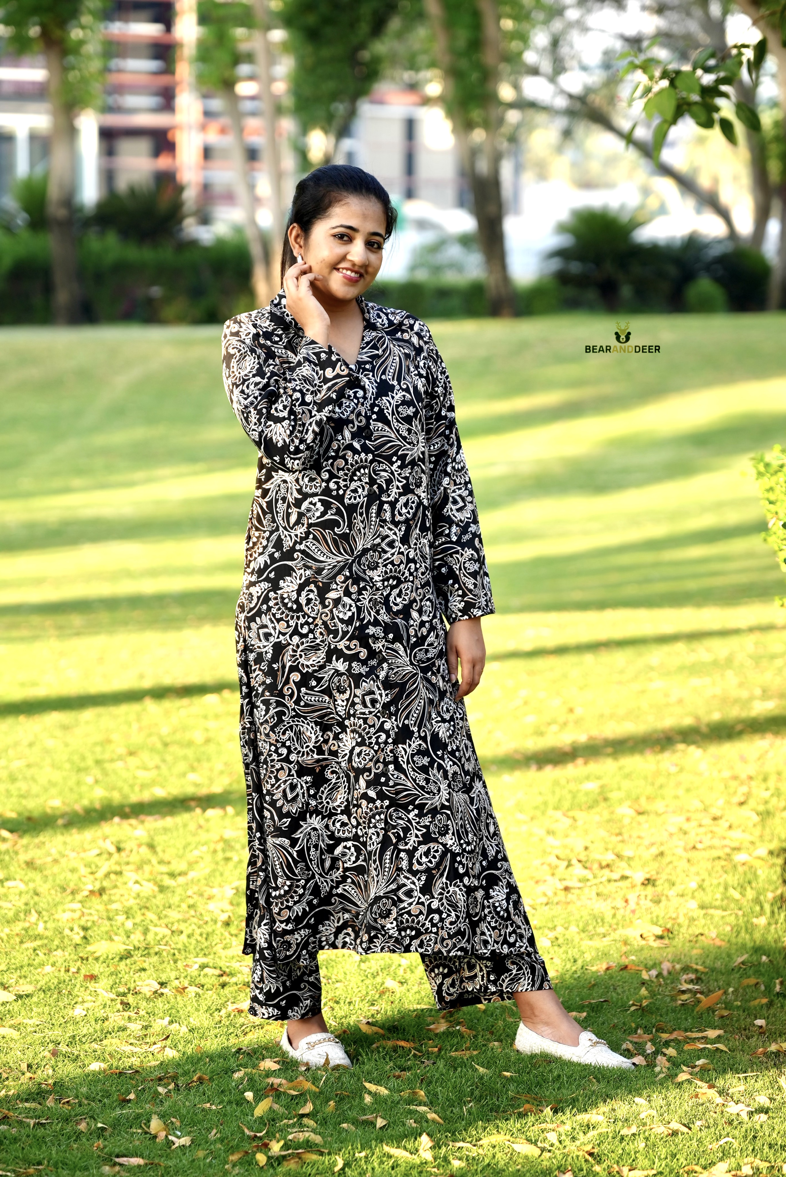 Paisely Black Full sleeve Rayon Cotton Pyjamaset