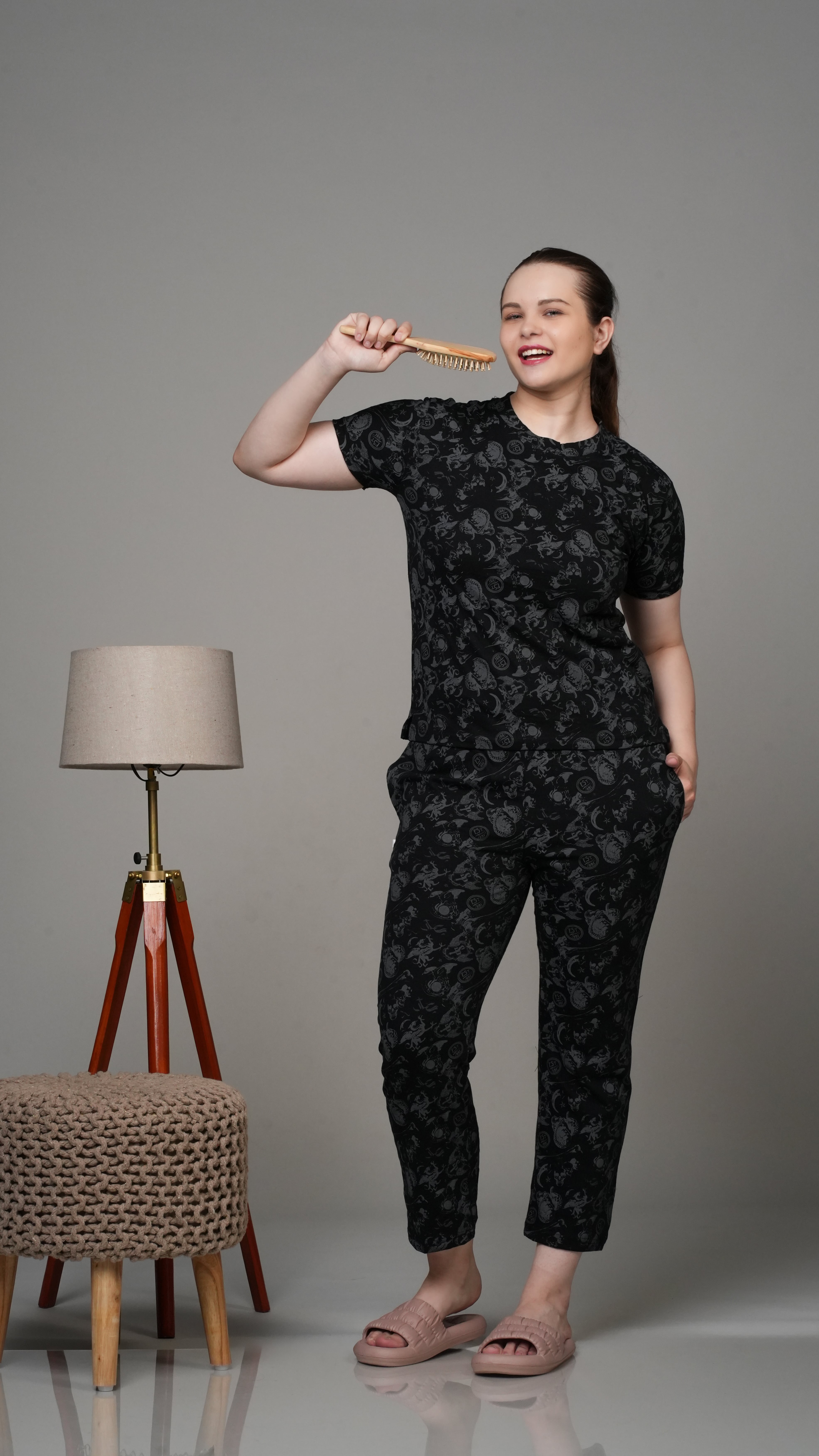 Black Grey Monochromatic Stretchable Co-ordset