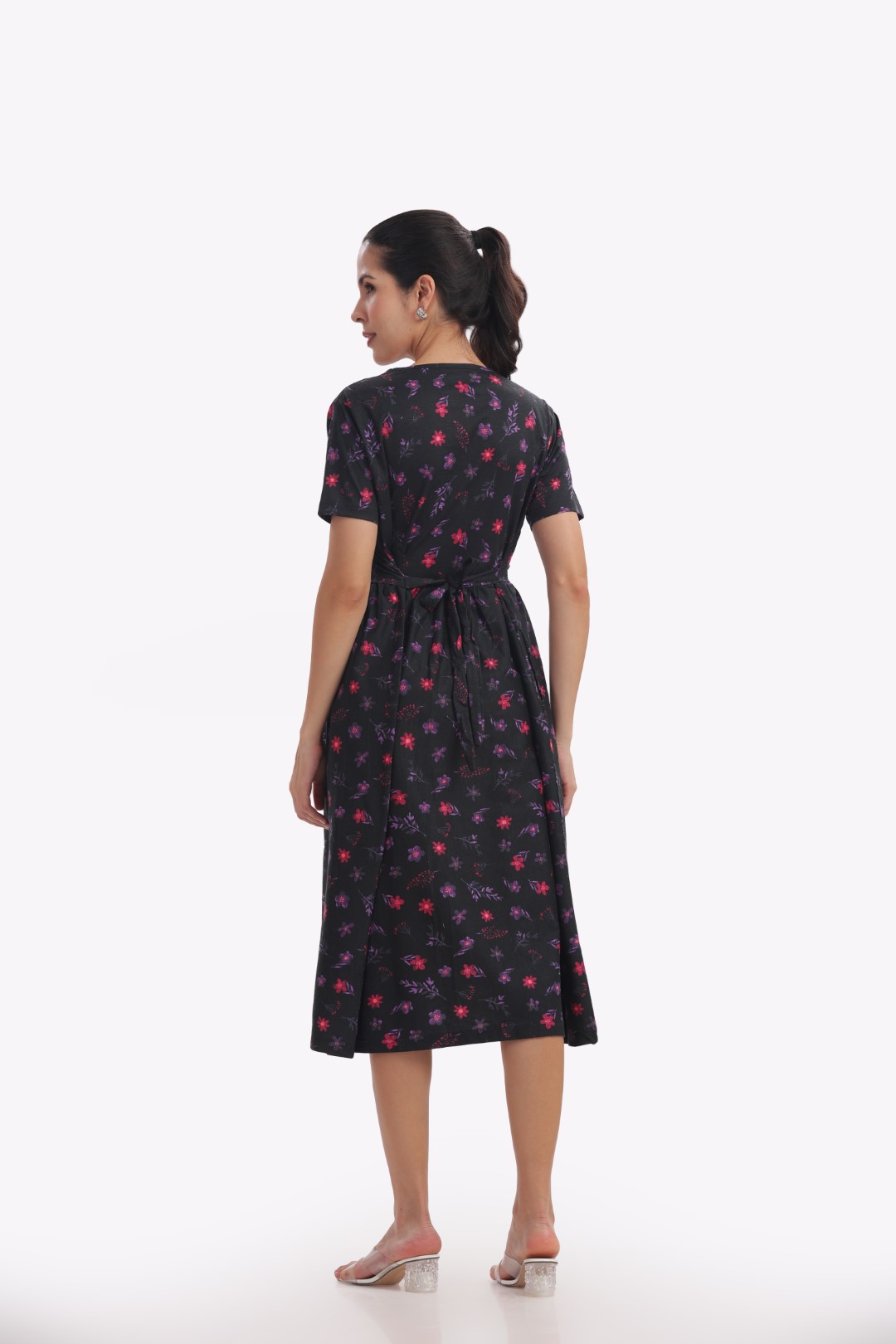BLACK FLORAL PRINT ZIPLESS FEEDING FROCK