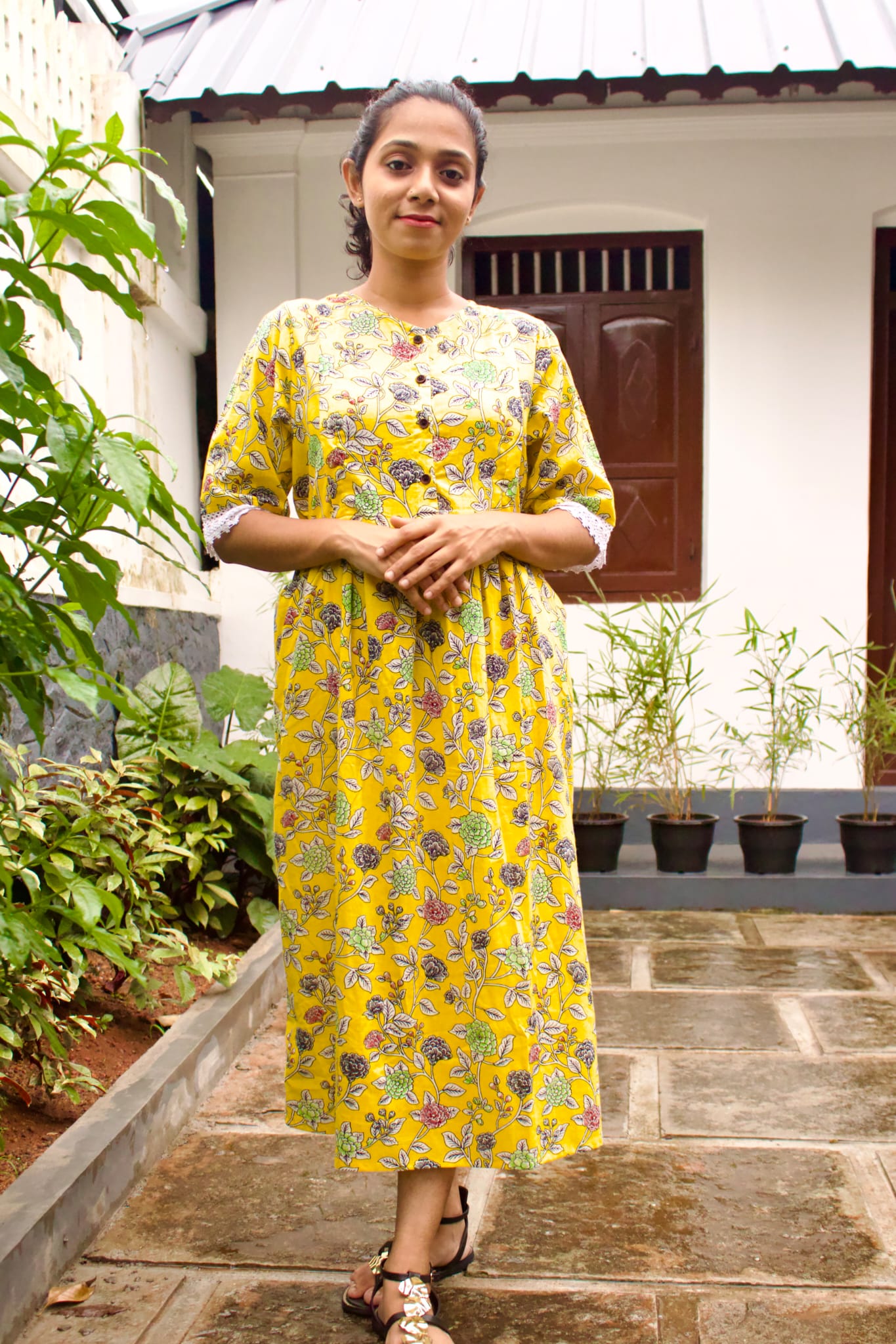 RAJASTHANI COTTON LEMON YELLOW FLORAL TOP
