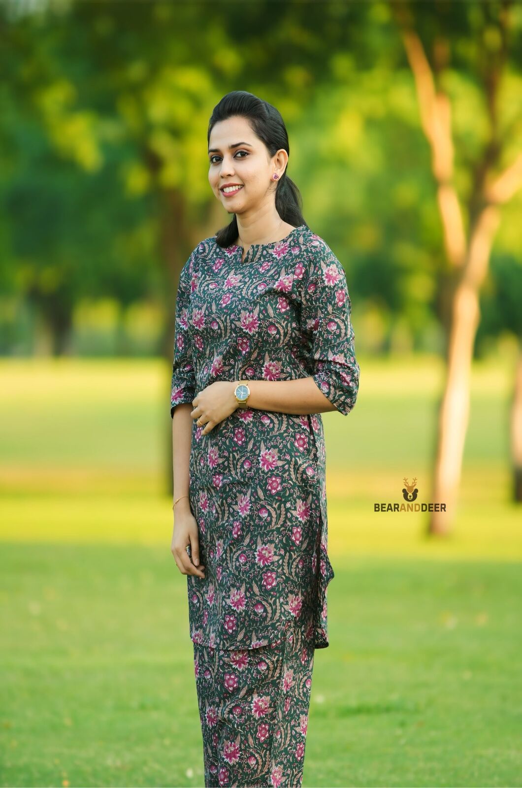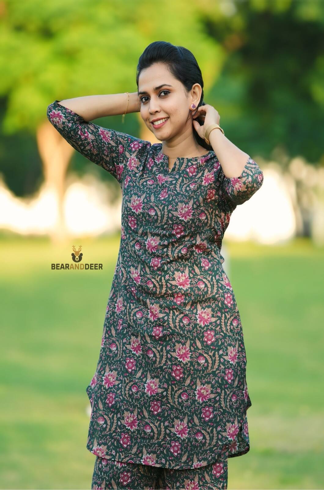 Green Floral Rajasthani cotton Pyjamaset