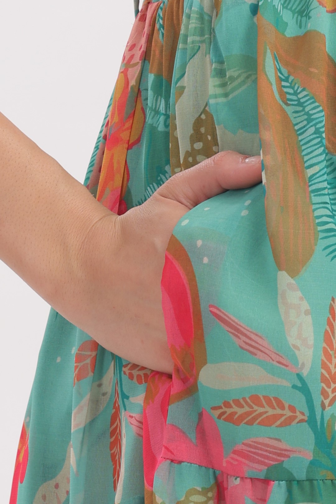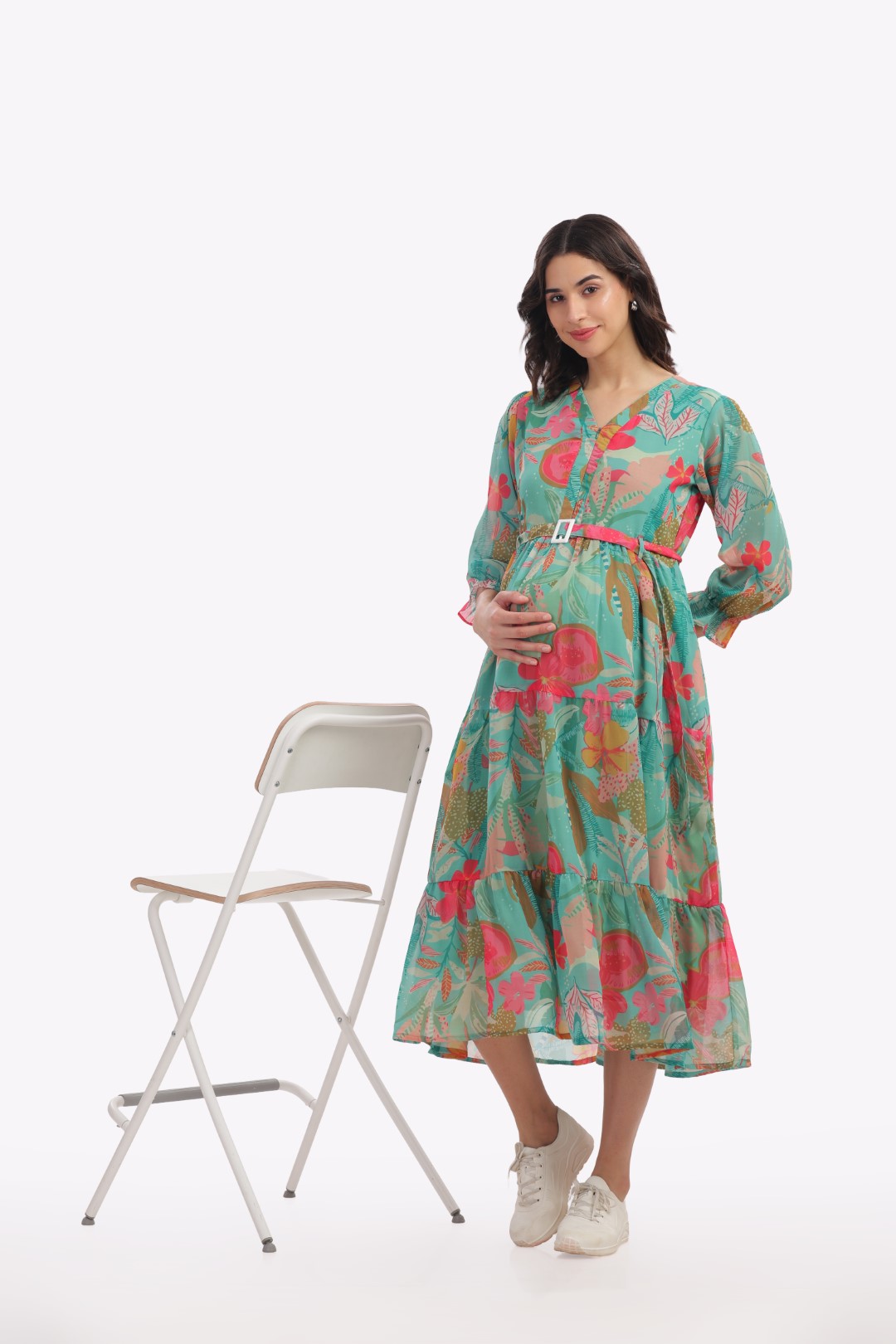 MULTICOLOURED TROPICAL MIDI FEEDING DRESS
